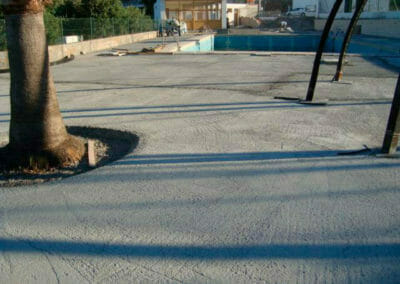 Así es cómo ha quedado el hormigón drenante de Triturados Macael Calciblanc en esta obra de piscina en Félix.