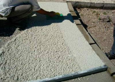 Hormigrand drenante de Calciblanc en piscina. Es un producto óptimo para pavimentos de alta permeabilidad, con un alto grado de porosidad y perfecto acabado. Es una alternativa interesante a la estética del pavimento tradicional. Su composición reduce y/o anula el flujo del agua de lluvia o de cualquier otra naturaleza mediante infiltración, por eso, es perfecto para obras de piscina.