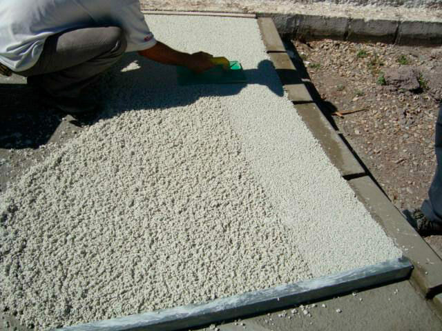 Así es cómo ha quedado el hormigón drenante de Triturados Macael Calciblanc en esta obra de piscina en Félix.