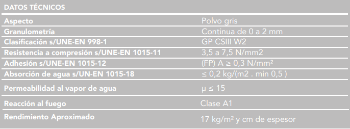 Su composición a base de conglomerantes, áridos seleccionados y aditivos especiales, le proporcionan una excelente trabajabilidad adecuada para su aplicación tanto de forma manual como mecánica.